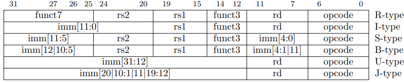표에서 알 수 있듯이, LSB 2비트는 무조건 11이며, opcode 7비트 중 실제로 5비트가 쓰인다.