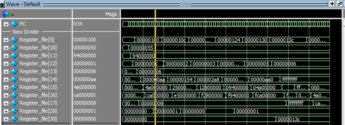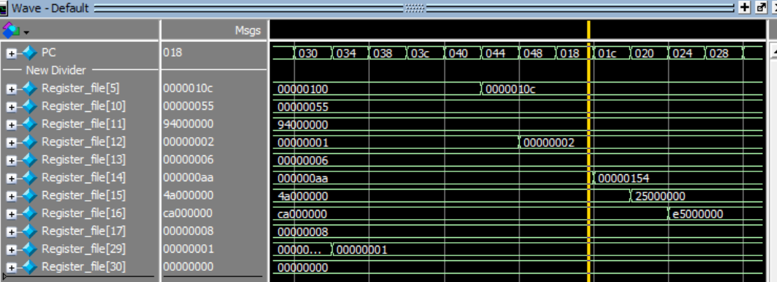 code2.txt를 실행한 결과다. 우선 첫번째 이미지는 PC가 branch하는 것을 나타내고 있다.