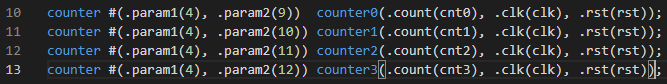 counter #(.param1(4), .param2(10)) counter1(.count(cnt1), .clk(clk), .rst(rst));