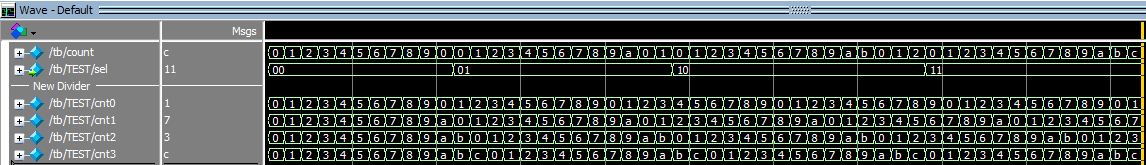 해당 모듈은 sel 값에 따라 4개의 카운터 값 중 하나를 출력한다.