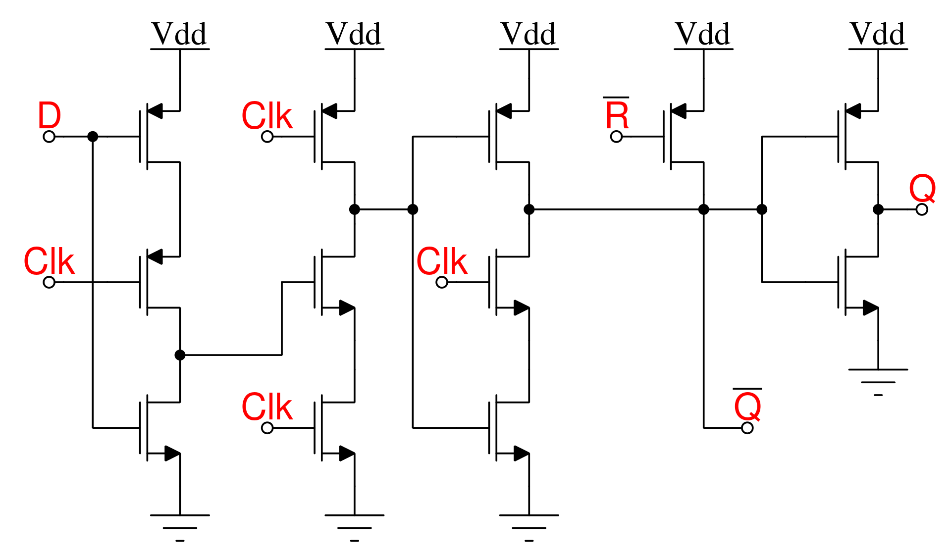 이렇게 설계하긴 했지만 실제로 D flip flop은 따로 MOSFET으로 설계한다. 위의 예시는 논리회로 배우는 학생들을 위해 일부러 쉽게 구현한 예시일 뿐이다.